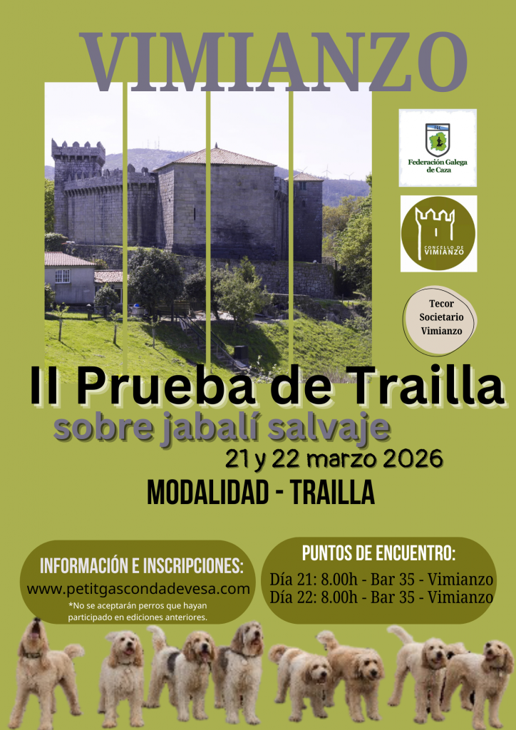 Si eres amante del mundo del perro de caza, del trabajo en el monte y de la tradición cinegética gallega, marca estas fechas en tu calendario: 21 y 22 de marzo de 2026. Vimianzo acogerá la II Prueba de Traílla sobre jabalí salvaje – Modalidad Traílla, una cita que promete emoción, técnica y pasión por el buen hacer en el campo.